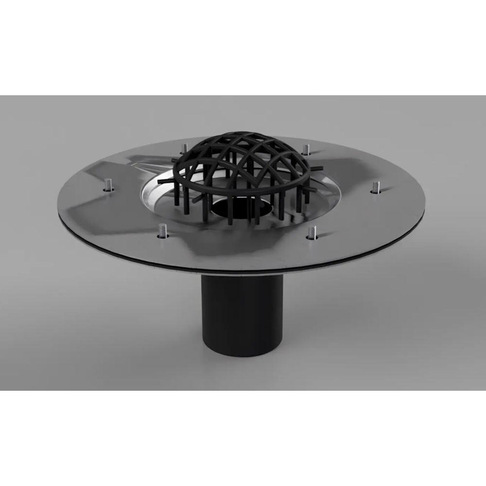 Wpust wykonany jest z wysokogatunkowej stali INOX 304, odpornej na działanie korozji i czynników atmosferycznych. Średnica DN 75 czyni go idealnym rozwiązaniem do mniejszych powierzchni dachowych, tarasów czy garaży. Pierścień skręcany umożliwia szybki montaż membrany, zapewniając szczelność bez dodatkowych materiałów klejących.